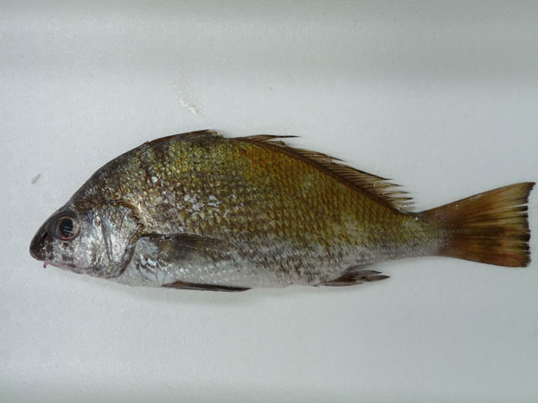 Pez óseo de tamaño mediano (aunque puede alcanzar los 70-75 cms. de longitud y un peso de 4 kgs., lo usual es que su talla no sobrepase los 35-45 cms.).